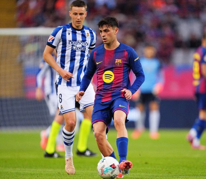 在上赛季巴萨和皇家社会主客场两回合交锋中,两支球队虽然都取得了1胜1负的战绩,但巴萨在主场以4-0血洗了对手,如今再度相遇,弗里克肯定想要延续强势的发挥,在主场沿用了4231的阵型,什琴斯尼镇守龙门,马丁、克里斯滕森、阿劳霍和孔德构筑后防,佩德里和德容搭档双后腰,拉什福德、德罗和巴德吉坐镇中场,单箭头则是莱万。
