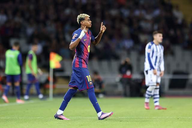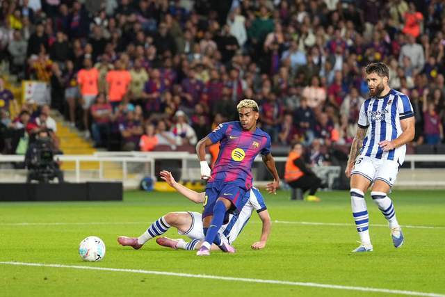 第73分钟,布赖斯-门德斯右路下底倒三角回敲,久保建英内切劲射,击中立柱弹出,皇家社会欠缺运气。回过头来莱万回撤送出直塞,亚马尔长驱直入,单刀推射命中,可惜越位在先。