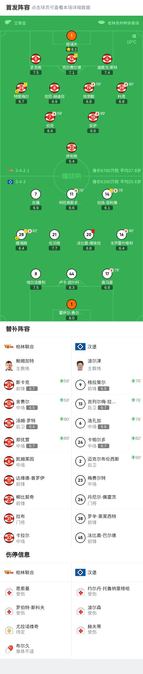 北京时间9月29日德国足球顶级联赛 联赛 第5轮,柏林联合主场对阵汉堡。最终比分柏林联合 0-0 汉堡。