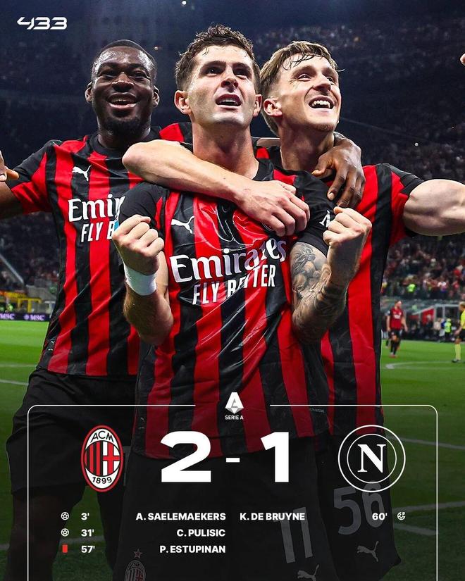 意甲焦点战,那不勒斯带着4连胜的光环做客圣西罗,却在上半场便0-2落后AC米兰。下半场,尽管AC米兰后卫埃斯图皮尼安拿到红点套餐,但红黑军团最终还是2-1击败了那不勒斯。凭借这场胜利,AC米兰终结了对手的不败金身,同时凭借4连胜的成绩登上了意甲榜首宝座。