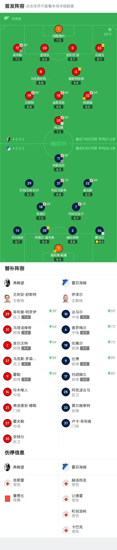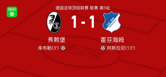 弗赖堡1-1霍芬海姆,库布勒首开记录,阿斯拉尼扳平比分