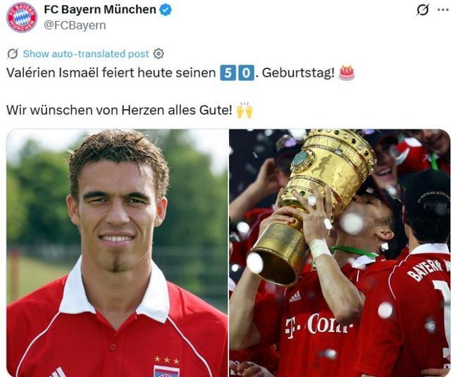 前法国国脚伊斯梅尔迎50岁生日,拜仁官推晒照送上生日祝福