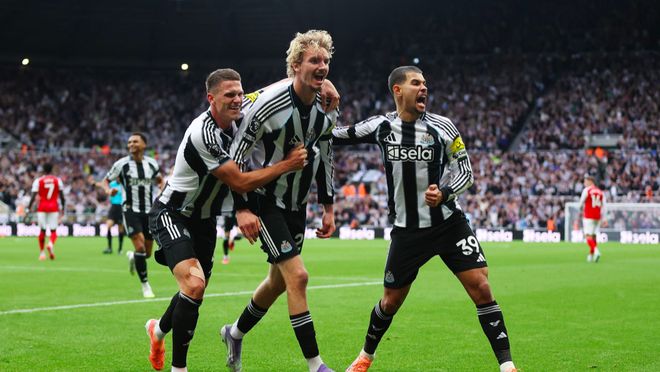 第34分钟,纽卡斯尔开出战术角球,托纳利不停球传中,沃尔特马德力压加布里埃尔,头槌破门。