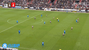 第25分钟,勒沃库森前场任意球传入禁区,后卫拦截传球变成助攻,塔普索巴停球抽射破门,勒沃库森1-0圣保利。↓