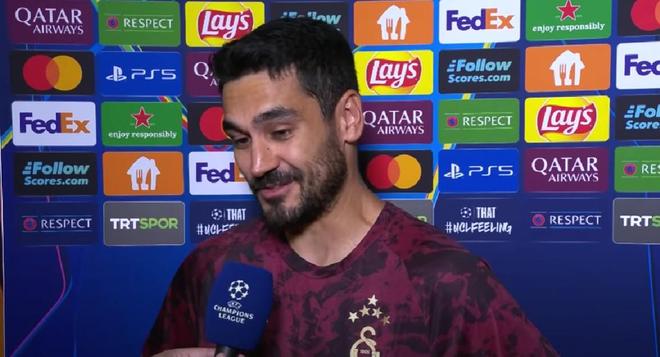 在主场1-0战胜利物浦的赛后,加拉塔萨雷中场京多安接受了采访。