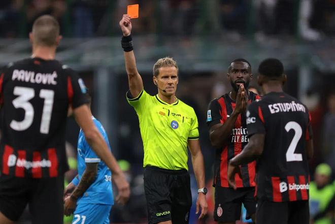 然而,事关意甲榜首的关键战役,那不勒斯自然不会就此罢休。第57分钟,埃斯图皮尼安在禁区内拉人犯规,主裁判果断判罚点球并出示红牌。这一判罚成为比赛转折点,AC米兰被迫少一人作战,形势瞬间紧张起来。