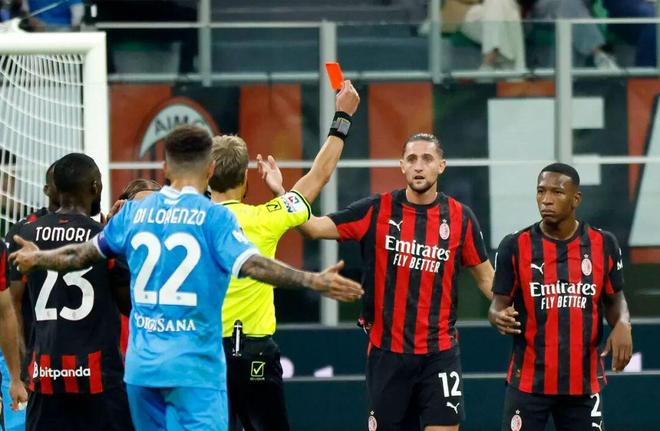 意识到犯错的埃斯图皮尼安,在主裁指向点球点后一脸苦笑,可更坏的还未到来:基菲回看录像,将本就毫无争球希望的厄瓜多尔人红牌罚下。德布劳内点球命中后,米兰只能少打一人,试图守住1球的微弱优势。米兰全队本役表现出色,埃斯图皮尼安确实是仅有的例外:即便在染红之前,他在面对波利塔诺时也相当吃力。