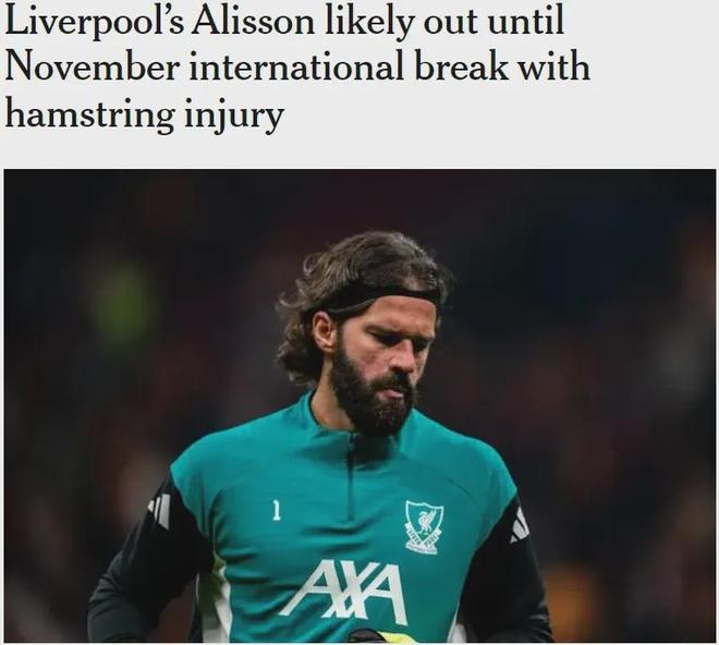 TA记者DO发文,利物浦门将阿利松腿筋受伤,他可能要到11月份的国际比赛日后才能复出。