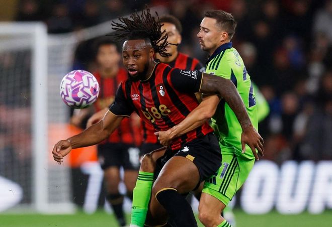 下半场易边再战。第53分钟,埃万尼尔松的一脚低射再次被门将化解。6分钟后,威尔逊的一脚凌空抽射被门将神勇扑出。第61分钟,伯恩茅斯率先进行换人调整。阿莱士-希门尼斯和克鲁伊维特替补上场。第70分钟,场上的僵局终于被打破!富勒姆进球了!丘库埃泽送出直塞球,塞塞尼翁前插,在禁区内获得直面门将的机会,他伸脚捅射破门!