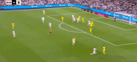 第37分钟,居莱尔任意球攻门击中人墙,随后右脚射门偏出