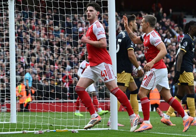 同样是2球完胜,阿森纳则赢得更为简单;枪手全场制造了20次射门,作为对手的西汉姆只有可怜的4次。赖斯第38分钟在禁区内抽射破门弑杀旧主;第65分钟,廷贝尔拉球切入禁区被迪乌夫拉倒在地,阿森纳获得点球机会;萨卡主罚命中。阿森纳取胜后,已经反超利物浦夺得了英超榜首的位置。